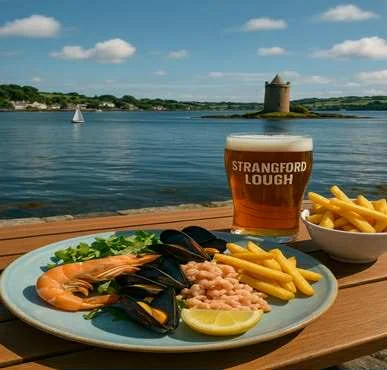 Loughview Cabins is just a mile from Strangford, a picturesque village on the shores of Strangford Lough in County Down. Strangford offers various dining options, delightful cocktails, aromatic coffee, and entertainment from various restaurants